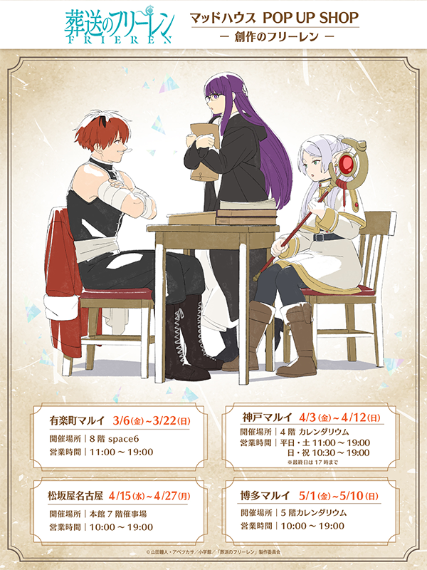 TVアニメ『葬送のフリーレン』アニメーションスタジオのマッドハウスが贈るPOP UP SHOP第二弾の開催が決定しました。