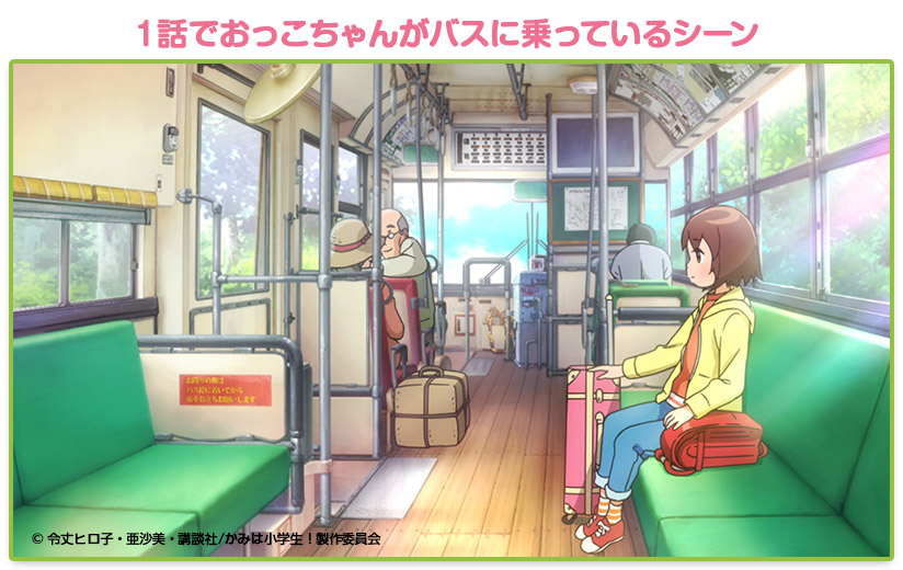 他にも、1話でおっこちゃんがひとりでバスに乗っているシーンは覚えているかな?
