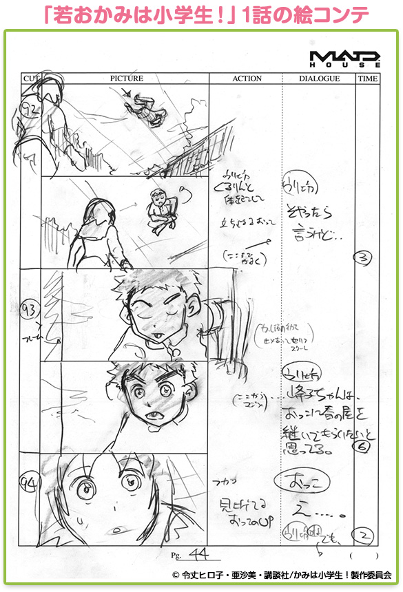 さて前回、撮影さんと相談するってとこで「演出さん」が出てきたよね?演出さんもまた、撮影さんみたいにいろいろな事をするよ。いつか、「絵コンテ」をかく人が居るってお話をしたよね。